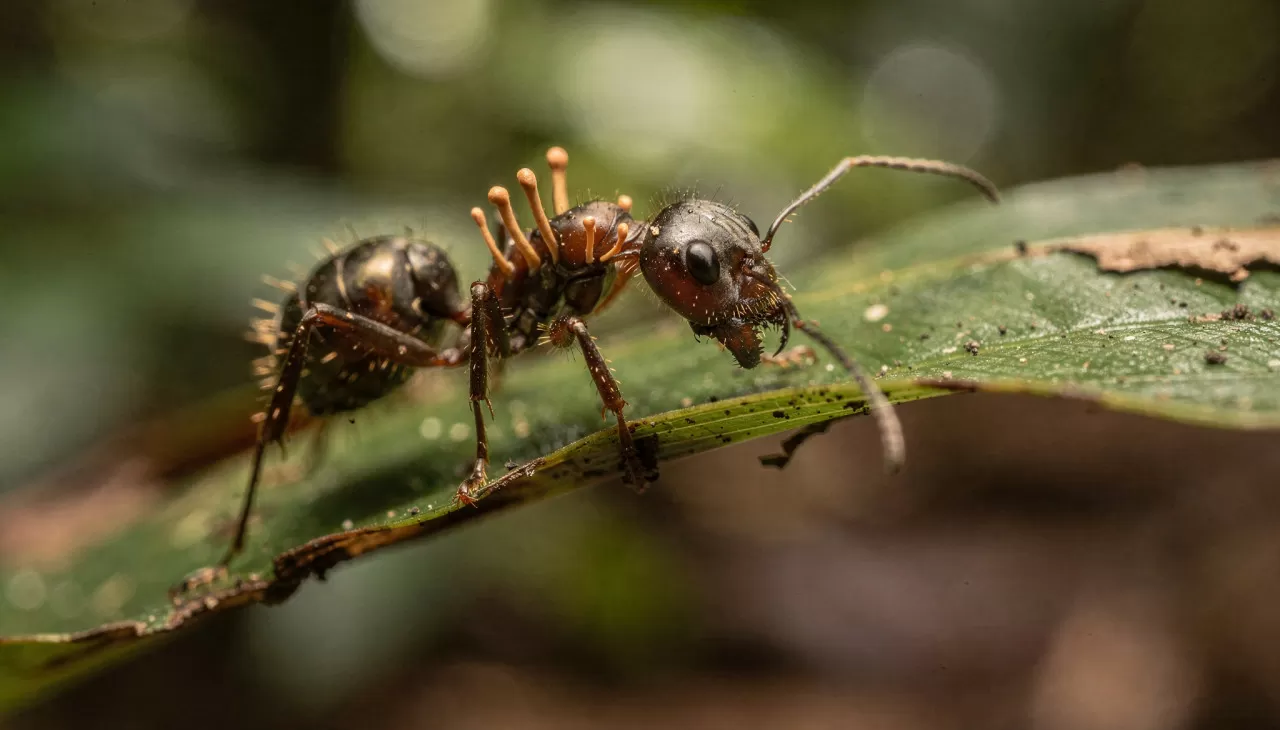 Com o tempo, o fungo se espalha pelo corpo da formiga, tomando completamente o seu controle. E quando está pronto para se reproduzir, o fungo faz com que a formiga suba em um lugar alto, como uma folha ou um galho, e morra. Isso acontece porque o fungo precisa de uma altura específica para que seus esporos sejam dispersados pelo vento e infectem outras formigas.
